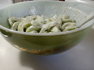 This recipe popped up on my Facebook recipe group and I wanted to try it last night. It ended up being very tasty and fairly easy and quick to put together. The longest part of the whole thing was peeling and slicing the cucumbers. But we both enjoyed it and it was a great compliment to the baked salmon we had for dinner. Hope you enjoy!